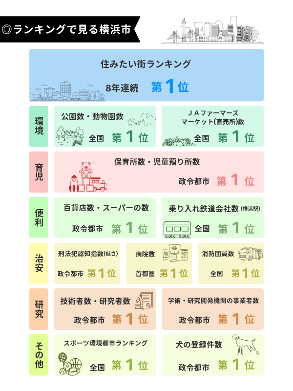 このように、横浜は環境・育児・利便性・治安・研究など、あらゆる面で高い基準でバランスの取れた都市です。